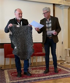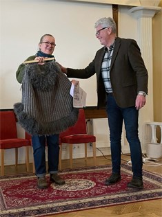 Berederierna Katarina Ugrinovska och Pontus Bergstrand avtackas här av Mikael Pettersson |