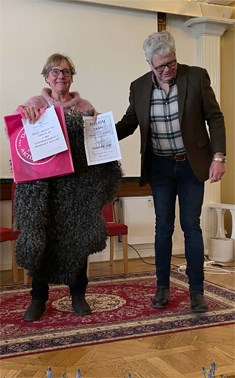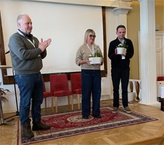 Berederierna Katarina Ugrinovska och Pontus Bergstrand avtackas här av Mikael Pettersson |